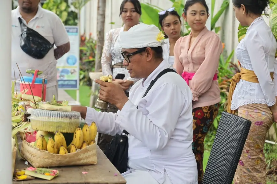 The offerings were presented as a symbol of sincere prayers for the animals at Bali Exotic Marine Park to always be blessed with good health. The tradition of presenting banten pejati offerings is a form of pure intention to ask for protection for the living creatures that are part of the park’s ecosystem. Not only that, but the staff also went around sprinkling holy water on the animals, in sacred places, and in every corner of the park.